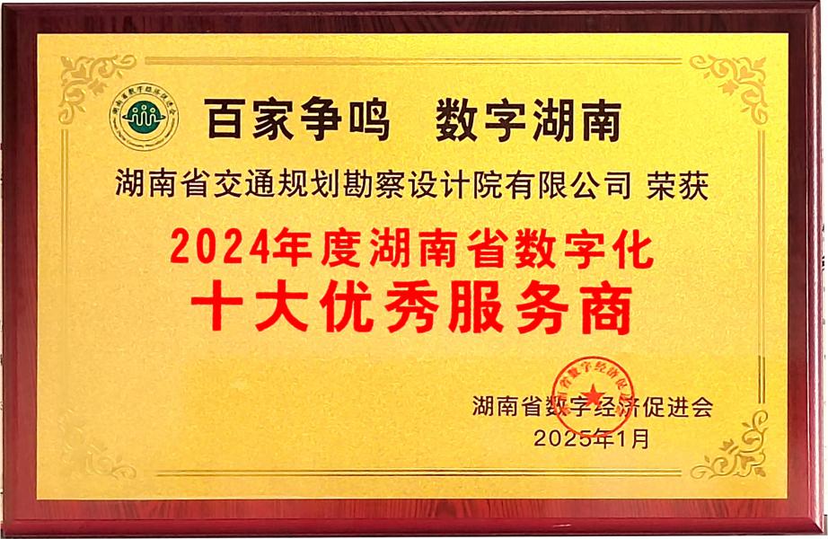 新質交通,數智領航 湖南交通設計院榮膺“湖南省數字化十大優秀服務商”