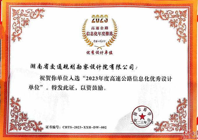 MORE紅網(wǎng)時(shí)刻新聞4月21日(通訊員 薛新風(fēng))近日,第25屆中國(guó)高速公路信息化大會(huì)暨技術(shù)產(chǎn)品博覽會(huì)在福州舉辦,大會(huì)舉行了“2023高速公路信息化年度推選活動(dòng)”揭曉盛典。湖南建投交通設(shè)計(jì)院喜獲“優(yōu)秀設(shè)計(jì)單位”表彰,是本次評(píng)選中湖南省唯一獲該類別榮譽(yù)的企業(yè)。
